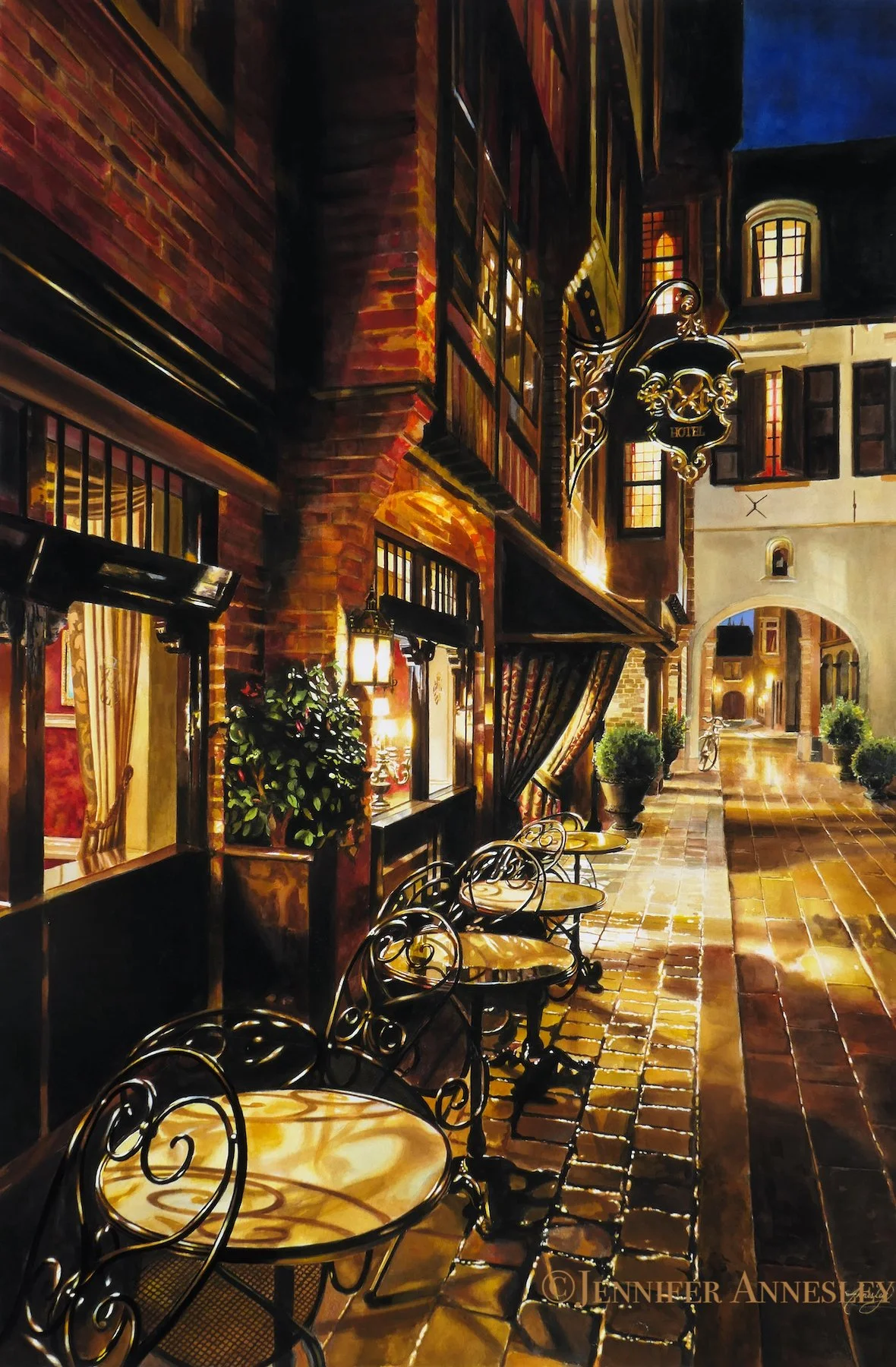 “After Hours, In Bruges” (Watercolour 39.5 x 53” framed)